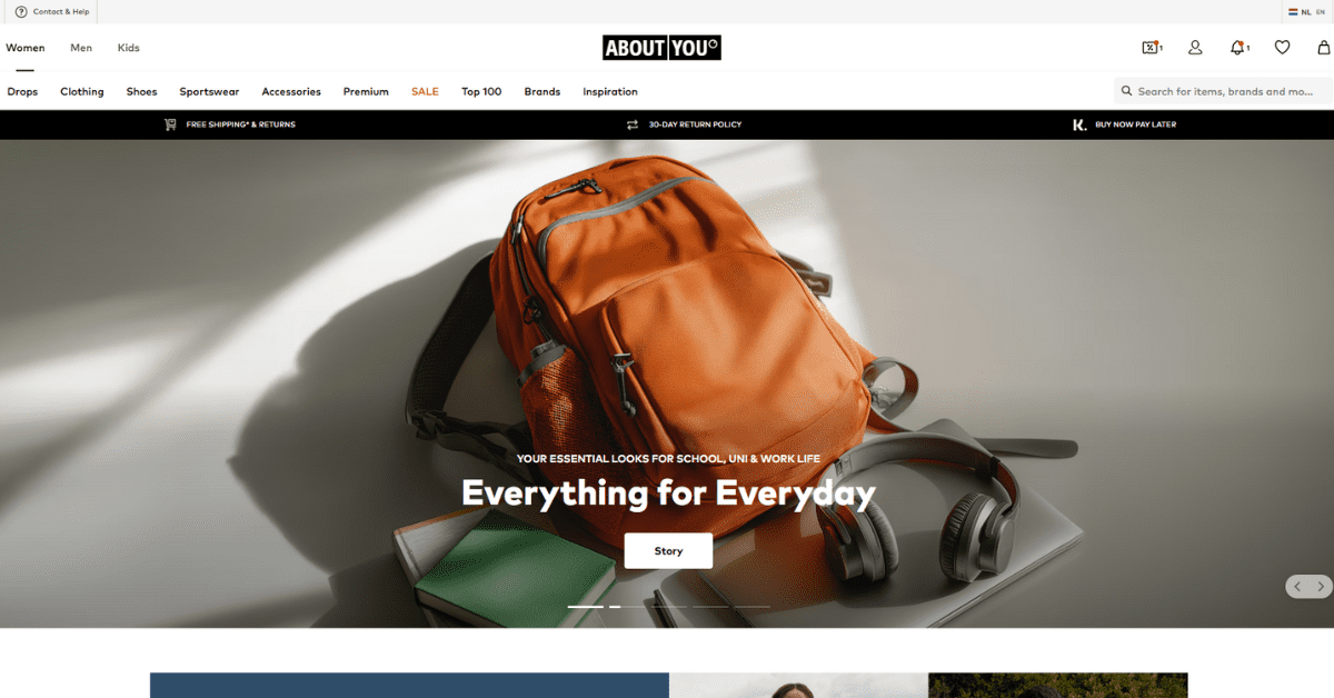 Dit snelgroeiende platform is inmiddels actief in maar liefst 28 landen. Met meer dan 30 miljoen maandelijkse gebruikers is de app van deze marketplace razend populair. Ook is het platform sinds kort onderdeel van de bekende fashion gigant Zalando. Zijn Gen Y en Gen Z jouw doelgroep? Dan zit je goed bij About You, aangezien deze generaties actief shoppen op het platform. Verkopen via dit kanaal geeft je als verkoper de mogelijkheid om een groot publiek te bereiken en internationaal door te breken. Daarnaast is het niet alleen een gesloten platform, maar ook een niche marketplace, waardoor merken goedgekeurd moeten worden voor ze mogen toetreden tot het platform. Het beperkte assortiment sluit hierdoor zeer goed aan op de doelgroep van het kanaal, wat het conversiepercentage bevordert.